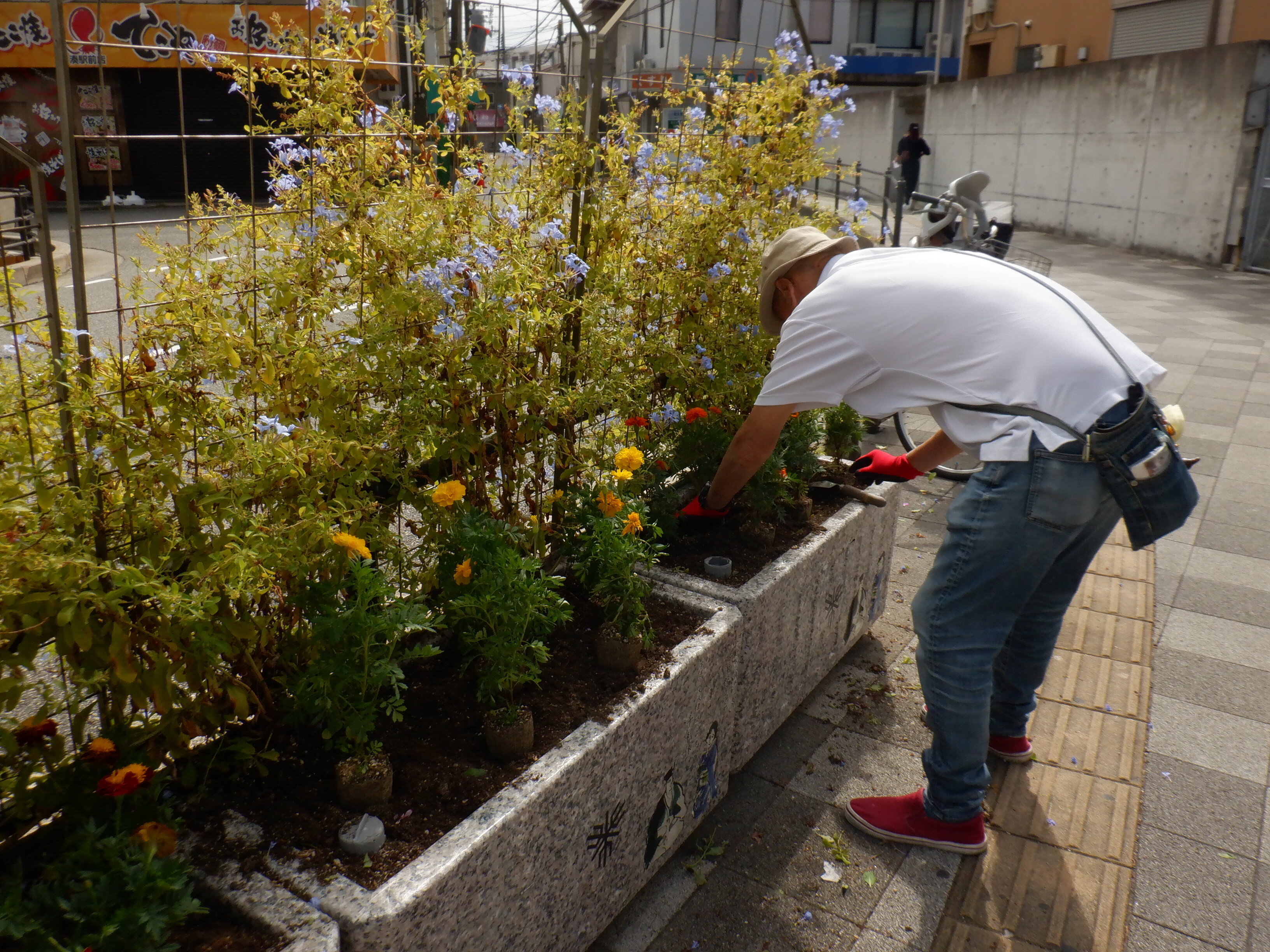 南海湊駅前は、湊西駅前公園愛護委員・地域の皆さまのご協力で、花植え活動を行いました。